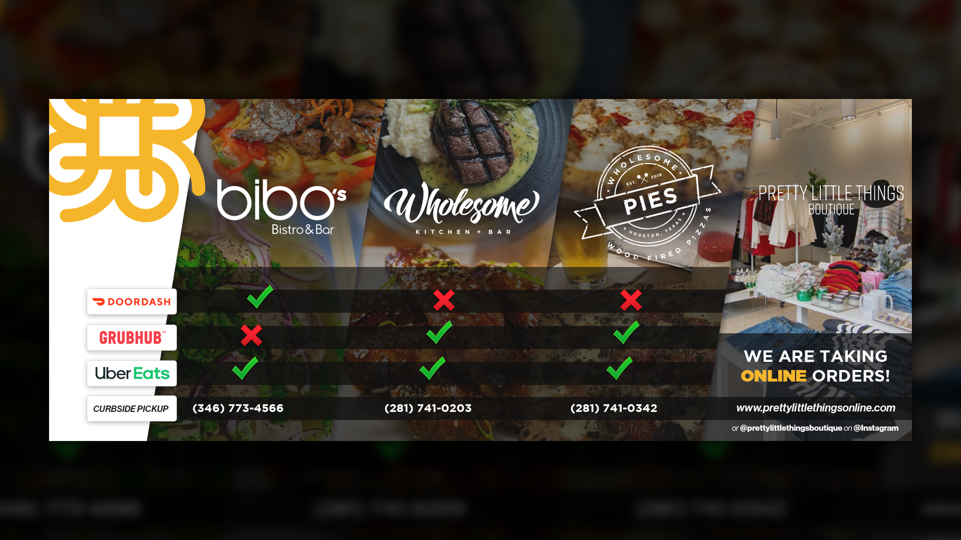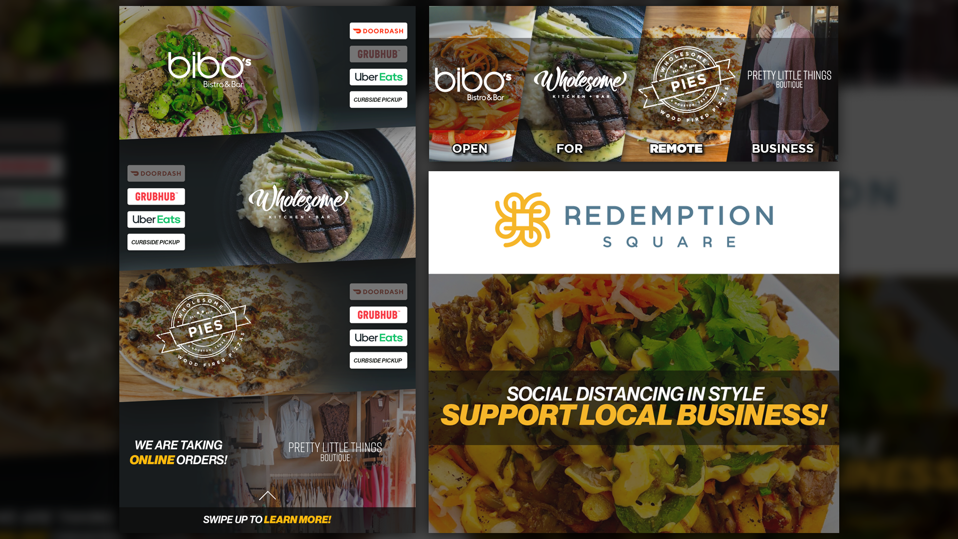 Social media graphics helped local restaurants announce new delivery options and curbside pickup, keeping them operational despite lockdowns.