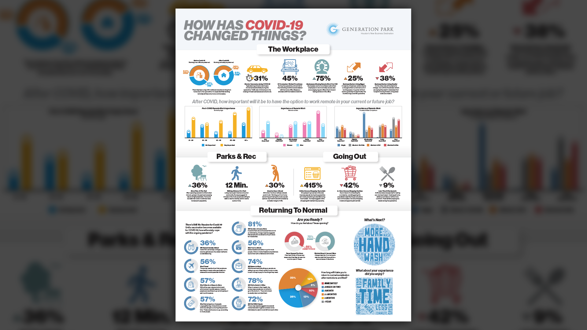 Infographics clearly illustrated how daily life and workplace environments had changed due to COVID-19, making complex information easy to understand.