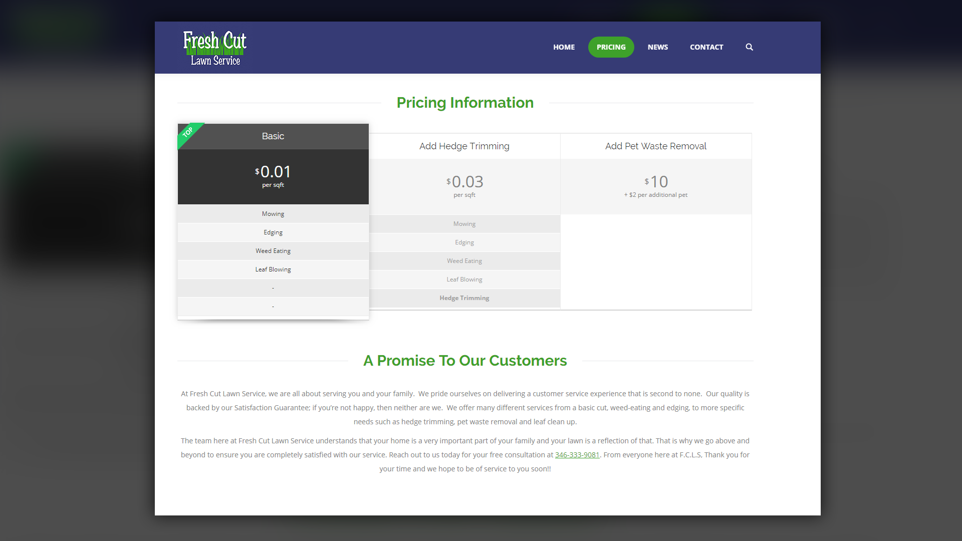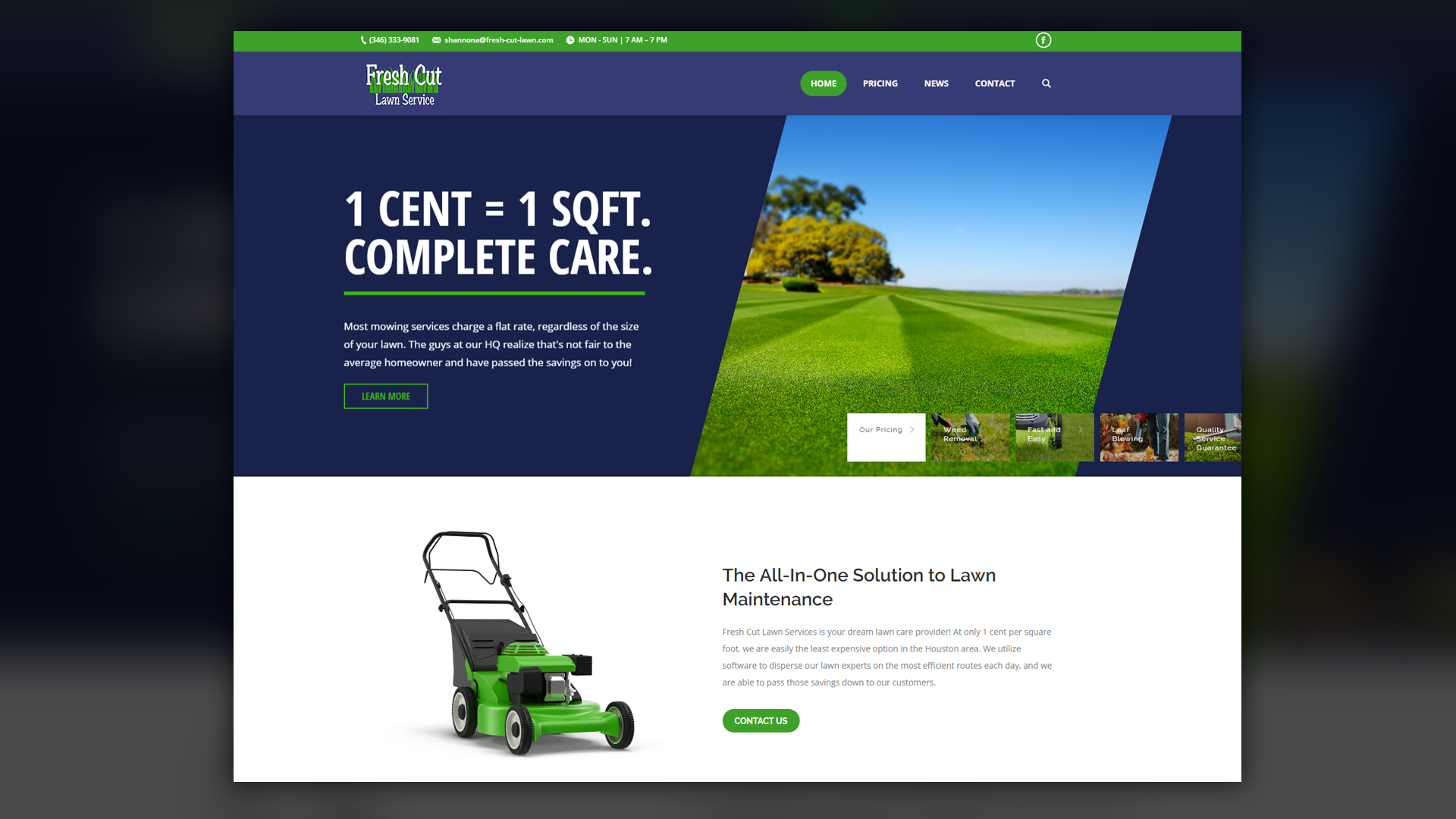 One of the main challenges of this project was ensuring that the website remained visually appealing while staying simple and easy to use. Fresh Cut Lawn Care had a straightforward pricing model, and we needed to reflect that simplicity in the web design without making the site feel plain or generic.