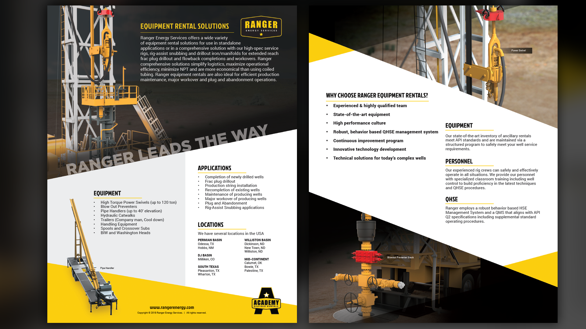 Since 2018, Predi Designs has partnered with Ranger Energy Services to provide regular design services, enhancing their marketing and operational materials. Our collaboration began with an intricate 3D animation project illustrating the fracking process and showcasing Ranger's equipment lineup. This project involved creating numerous custom 3D models, which have since been repurposed across various collateral, ensuring consistency and visual appeal. Guided by Ranger's established color scheme, we have developed a cohesive visual identity across all materials.